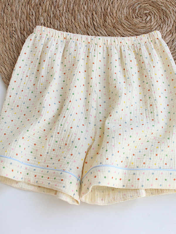Lorsion Spring & Summer Women’s Three-Piece Pajama Set – Cotton Short-Sleeve Homewear for Comfort & Sleep | Beige Dots